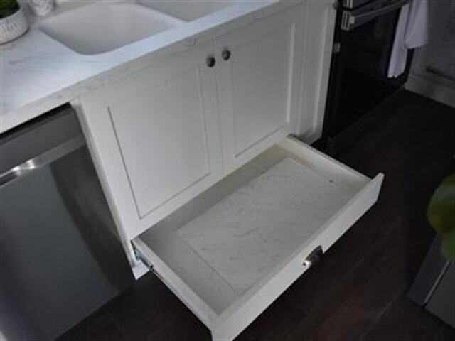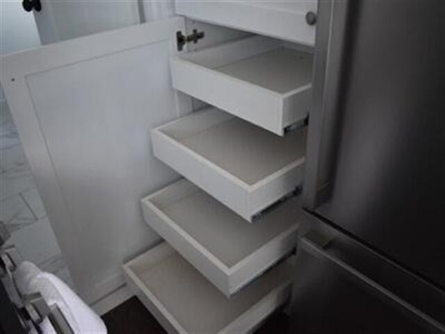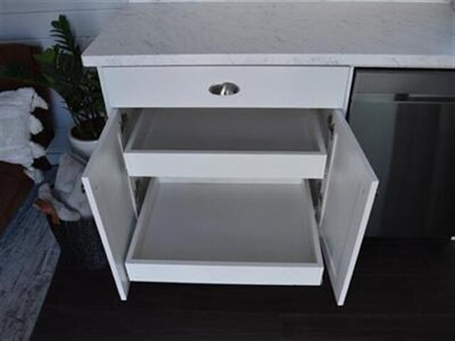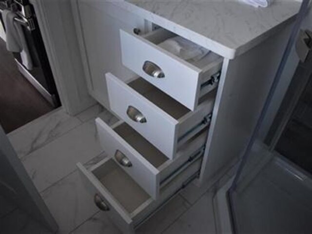 White shaker cabinets with soft close drawer slides and hinges (kitchen and bathroom)