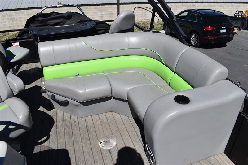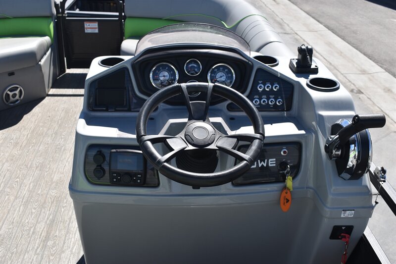 10 Person Boat with Features such as, Heavy Duty 9 inch Bimini Top, Cover, Tach, Speed, Fuel, Volt and Trim Gauges, Tinted Windscreen, Driver Seat Moves Front and Back, Bunch Of Storage, Bilge Pump, Interior Lights, Outside Light, Docking Lights, Built-in Fuel Tank (24 Gallon), Kicker KMC45 Stereo With AM/FM Tuner, Bluetooth Compatible, Waterproof LCD Display, LED Backlit Buttons, Fishing Station With Livewell (12 Gallon) Dinette Table and So Much More!!! Don't Forget To Ask About Our Extended Warranties!!!