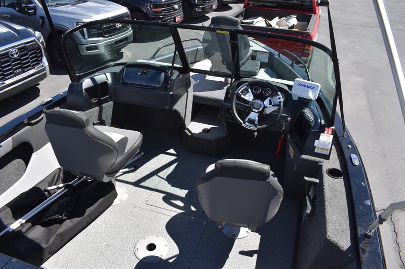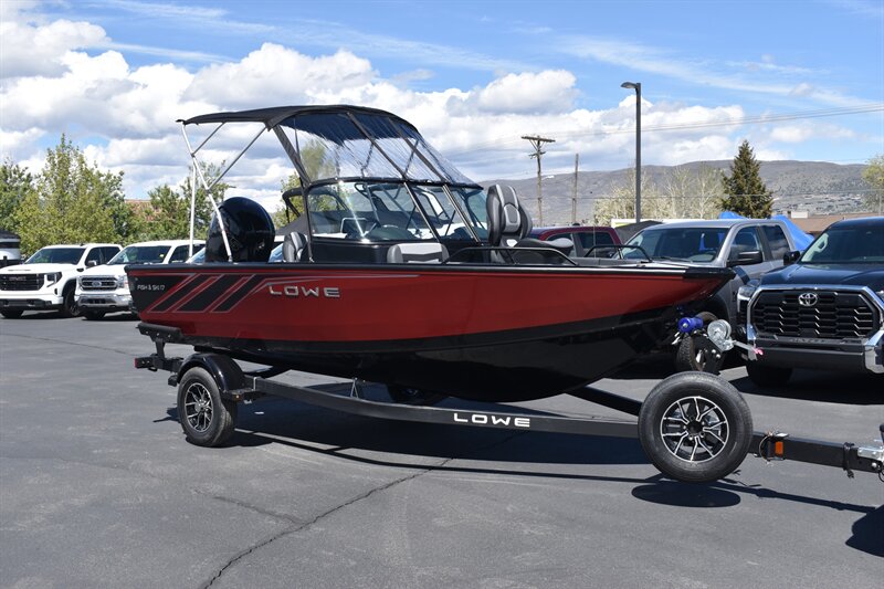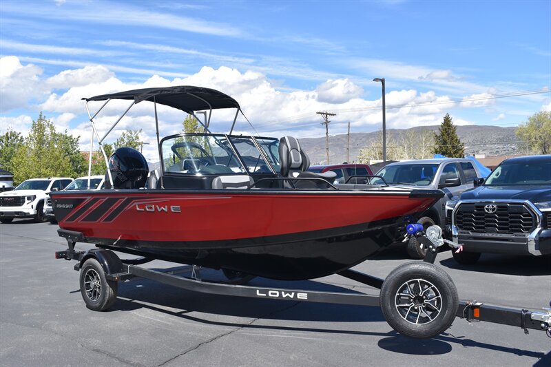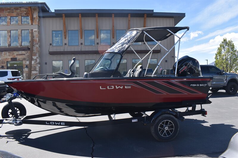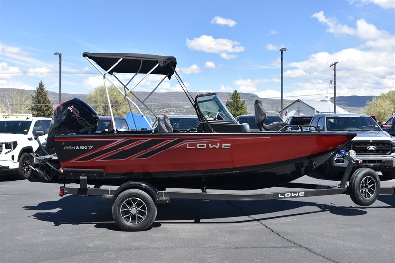 2026 Lowe FS1700 (Fish and Ski) With 115 HP PRO XS Mercury Engine and Trailer. 6 Passenger Seating, Navigation Lights, Bilge Pump, Aerator Auto, Aft Recirculating Livewell (24 Gallon), Locking Center Rod Locker W/Tubes (4-6'6" Tubes), 26 Gallon Fuel Tank, Kicker KMC45 Stereo With AM/FM Turner, Bluetooth Compatible, Waterproof LCD Display, LED Backlit Buttons, Bow, Stern, Port & Starboard Storage, Under Deck Storage, Locking Glove Box With Storage, and So Much More!!! Includes Trolling Motor, 2 deep Cycle Batteries, Don't Forget To Ask About Our Extended Warranties!!!
