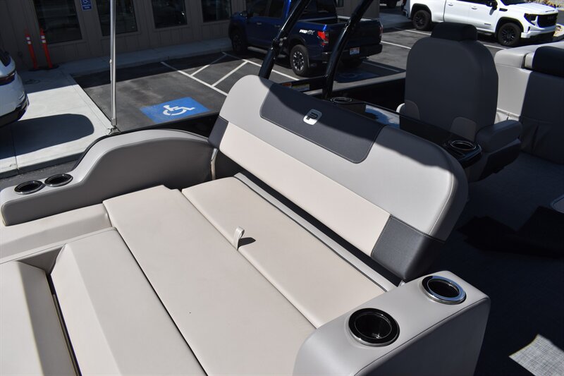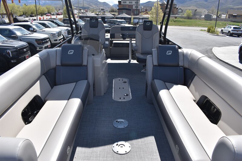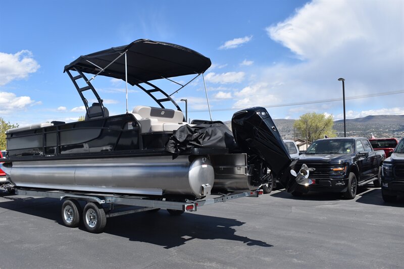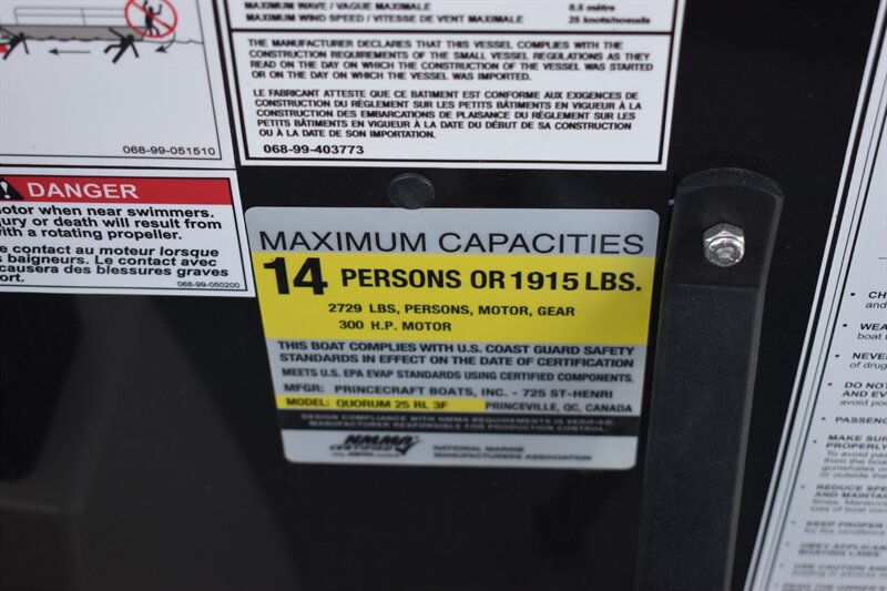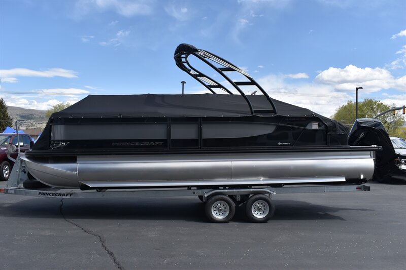 2026 Princecraft Quorum 25RL Tritoon with 200HP V6 L Mercury Engine and Trailer. 14 Person Boat with Features such as, Wake Board Tower, Bimini Top, Cover, Tach, Speed, Fuel, Volt and Trim Gauges, Kicker Stereo, Waterproof Speakers, Captain's Chair On Slide and Swivel, Passenger Captain Seat On Slide and Swivel, RL Design Including Sundeck With 2-Position Adjustable Backrest, Large Snack Table, and Storage Under All Seats, Rear Padded Sundeck, 2 Chaise Lounges, Navigation Lights, Livewell, Rod Storage, Ice Box, Privacy Enclosure, Permanent Gas Tank (49 Gallons), Cover, and So Much More!!! Don't Forget To Ask About Our Extended Warranties!!!